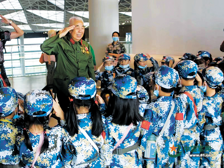 老兵与小朋友们互相敬礼。 王澄湖摄