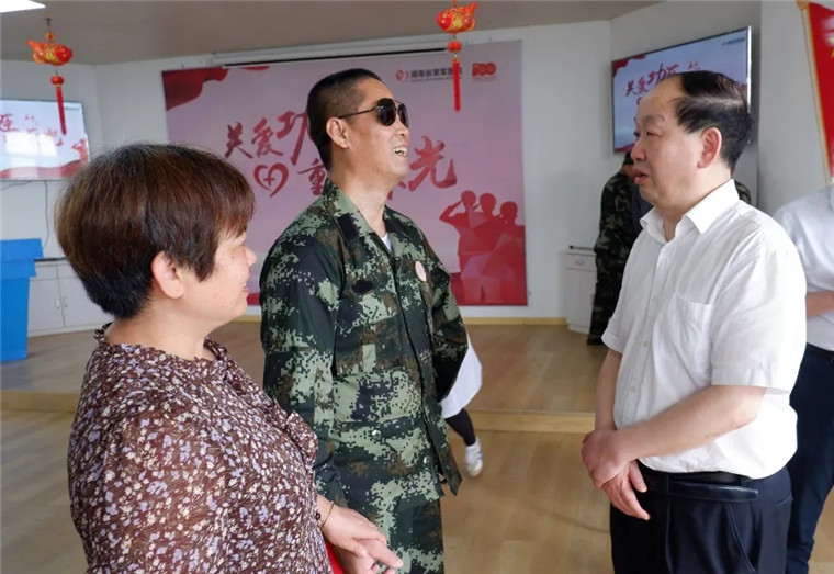 6月2日,湖南省退役军人事务厅厅长唐勇看望在省荣军医院参加短期疗养的伤残军人。