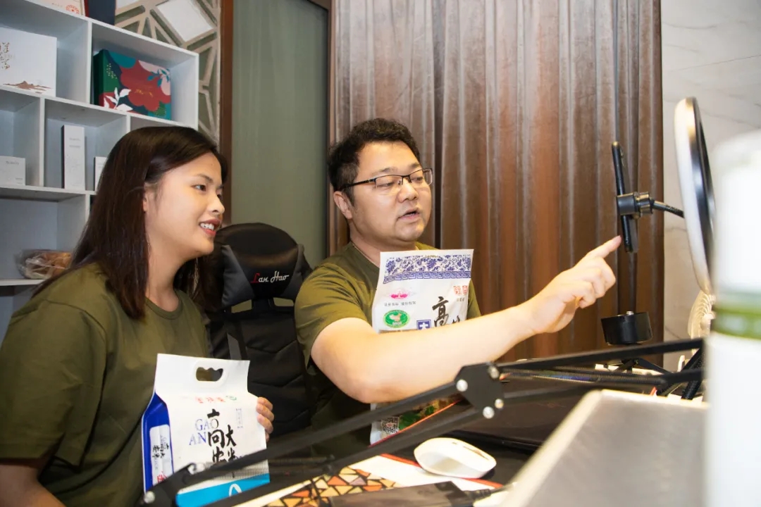 退役军人家属在金宝退役军人创业孵化基地的直播间进行带货直播 侯坤 摄