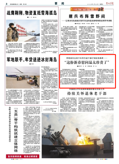 “我们提前给您拜年了!”春节前夕,河南省军区郑州某干休所政委张玉明带领工作人员,登门慰问离休干部王治军。众多慰问品中,王治军被一本红色画册所吸引。打开一看,一张张熟悉的老照片映入眼帘,王治军的眼睛瞬间湿润了。
