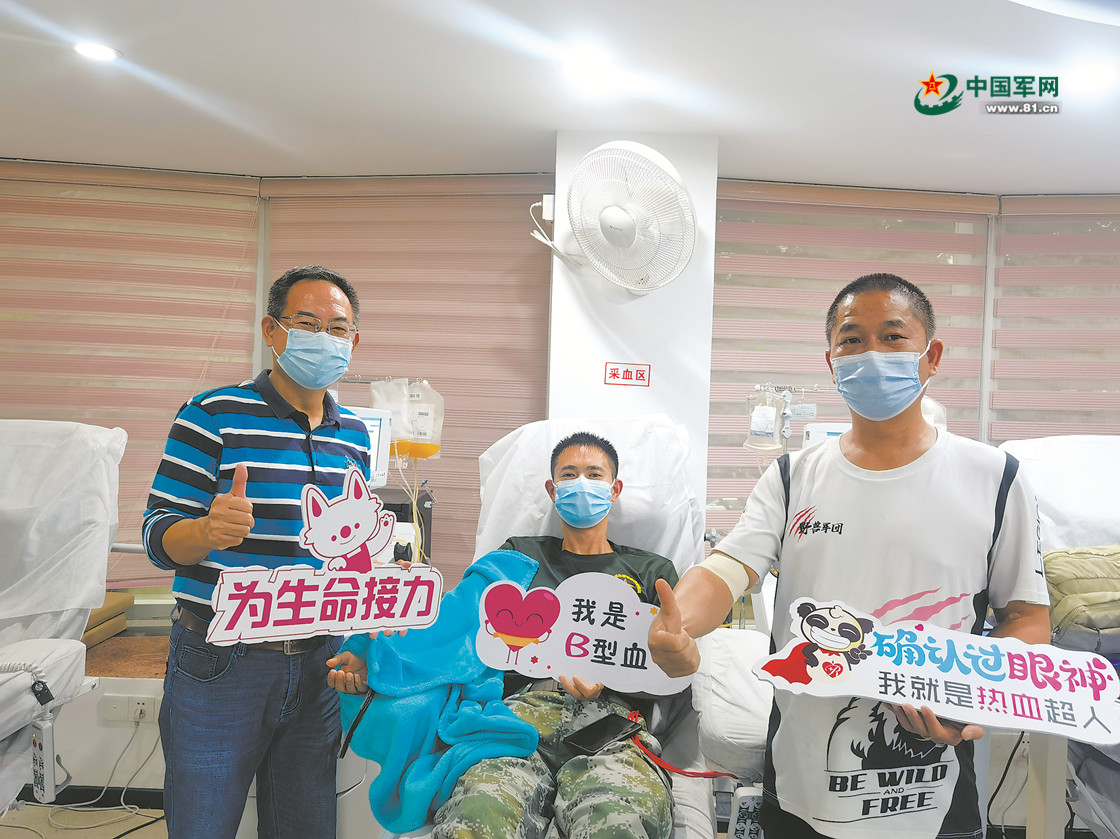 献血老兵合影。陈明跃摄