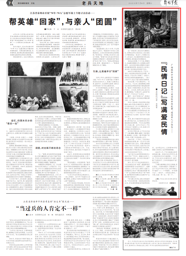 原来,黄大爷离家多年没回过老家玉林市陆川县,几次离家走失其实就是想回老家看看。于伍生决定帮助老人完成心愿。去年8月26日,于伍生和社区干部驱车6小时,陪黄大爷回到他日思夜想的家乡。