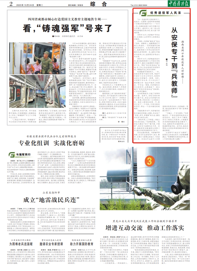 从安保专干成长为“兵教师”,回想自己的成长经历,付舒雄踌躇满志:“我要继续发扬优良传统,在三尺讲台做出更大成绩。”