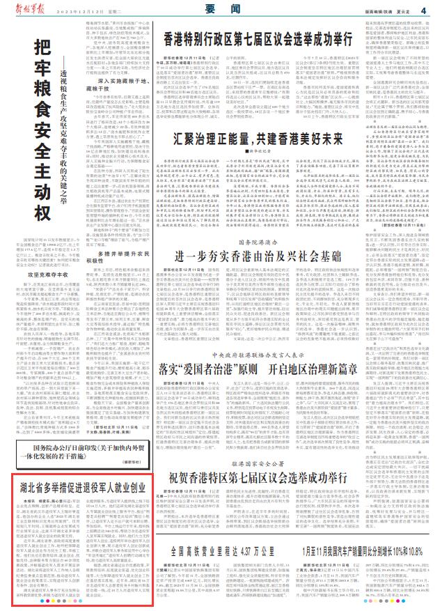 近年来,湖北省委、省政府高度重视退役军人就业创业工作,始终把保障退役军人就业创业作为民生工程、幸福工程。他们先后在教育培训、就业创业、抚恤优待、法律服务等方面出台40余项优惠政策,并根据退役军人需求开展宣讲活动。湖北省将退役军人工作纳入各级纪委监委重点监督范围,推动退役军人就业创业政策落实,实现退役军人创新有条件、创业有舞台。