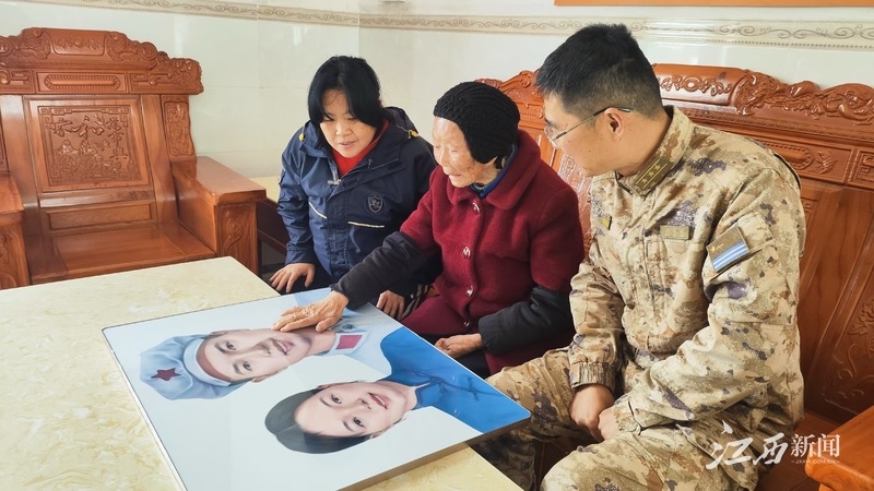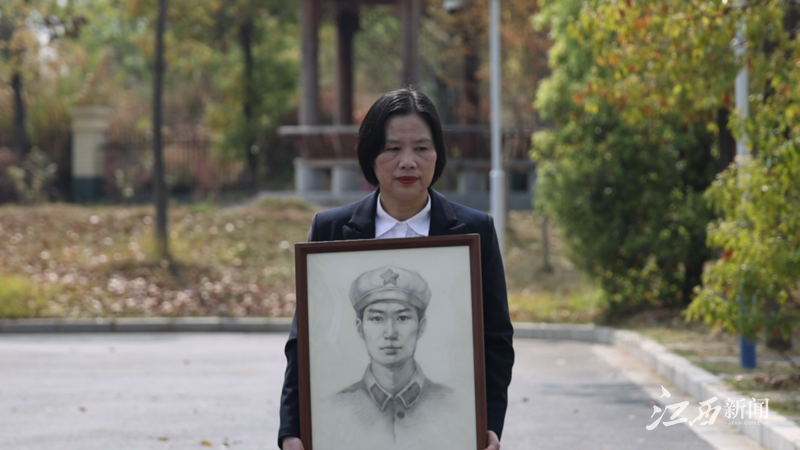 “你看我跟哥哥的眼睛是不是特别像,画得简直一模一样。”烈士家属严先秀举着哥哥严观林的画像笑着说。严观林比严先秀大5岁,去参军时年仅17岁。父亲早逝,哥哥在参军的第七年牺牲。