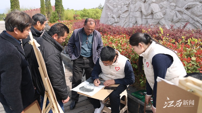 这一天,在于都县烈士纪念园里,于都县举办“赓续·2025·清明祭英烈”暨百位烈士画像捐赠活动,百幅烈士画像被郑重地交到胡三风等100名烈士家属手中。画中的烈士个个英气勃发,家属们抱着像框从英名墙下走过,像框背面的文字与墙上的名字骤然重叠。这些画像由安徽、武汉、浙江等地高校的师生,以志愿者的身份完成。此次捐赠活动,是一次跨越世纪、跨越山河的“相见”,更是一场用画笔接力的精神传承。