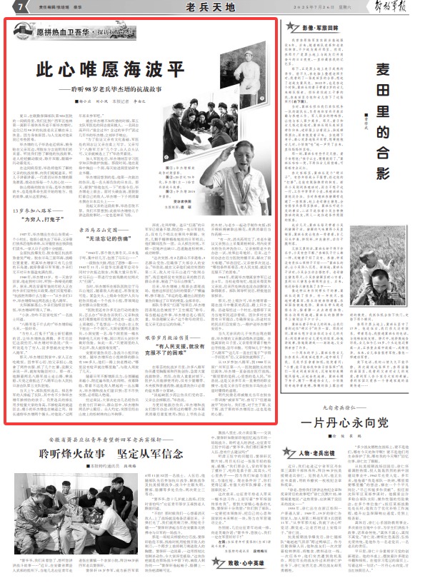 夏日,在联勤保障部队第924医院的一间病房里,我们见到广西军区桂林第一离职干部休养所老干部毕杰增时,这位已经98岁的抗战老兵正躺在床上休息。因为身体原因,与人交流对他来说已有些困难。