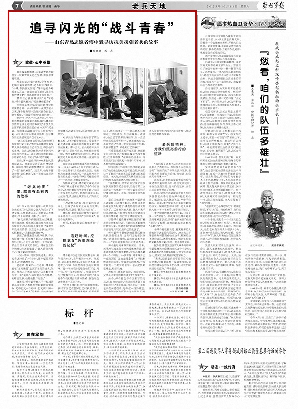 如今,傅中魁在书中记录下的老兵,已有40位去世。“我还想再多留下些老兵印记。”傅中魁说,他之所以一直和老兵们保持联系,每年逐一回访看望,就是希望挖掘出更多的老兵故事,让更多人看到他们闪光的“战斗青春”,铭记他们的牺牲与奉献。