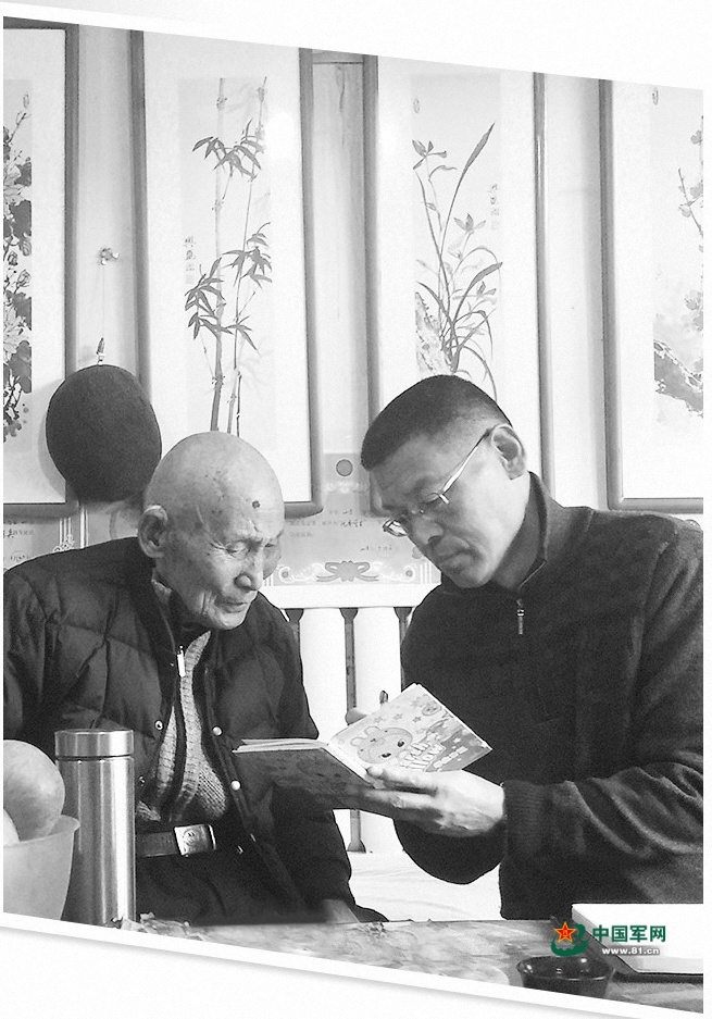 93岁的老兵陈崇义去年犯了两次脑血栓,让傅中魁非常挂念。看到傅中魁走进屋里,卧病在床的陈崇义费力地坐起身来。聊一会儿,老人倚着床头休息一会儿;聊到兴头上,身体就往前倾一倾。傅中魁拉着陈崇义的手,把身体贴到老人跟前,不厌其烦地一遍遍听他讲战斗故事。