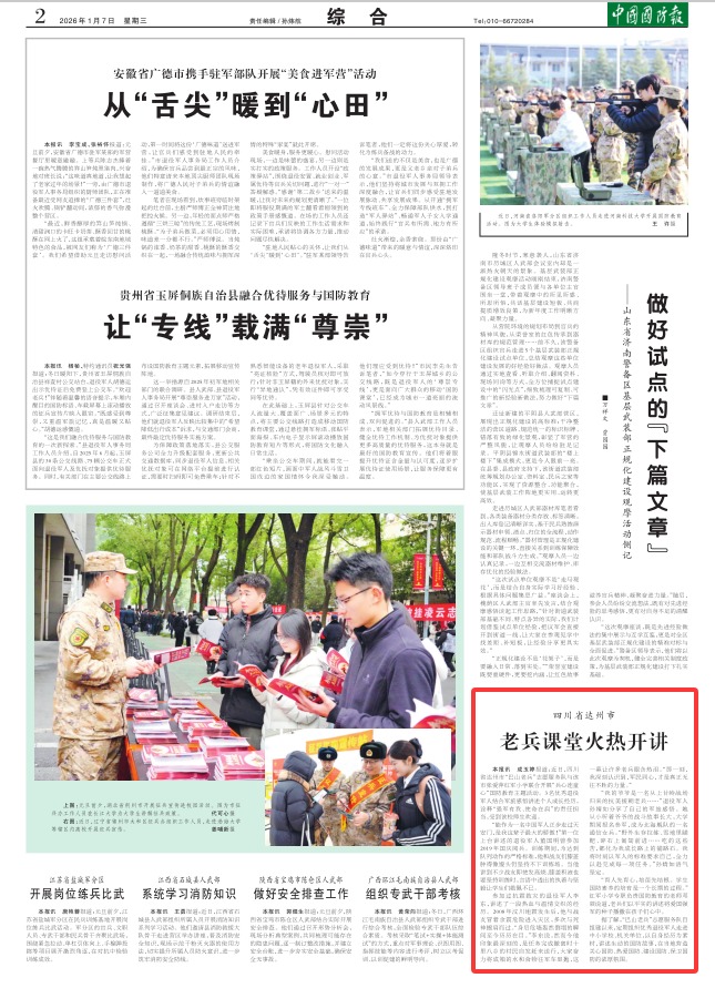 据了解,“巴山老兵”志愿服务队自组建以来,定期组织优秀退役军人走进中小学校、机关单位,以自身经历为素材,讲述生动的国防故事,在当地营造关心国防、热爱国防、建设国防、保卫国防的浓厚氛围。