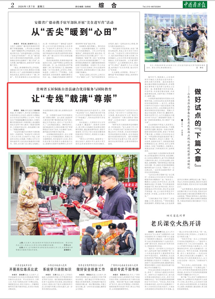 中国国防报讯 杨秘、特约通讯员祝光强报道:冬日暖阳下,贵州省玉屏侗族自治县祥查村公交站台,退役军人胡德运出示优待证后免费登上公交车。“欢迎老兵!”伴随着温馨的语音提示,车厢内醒目的国防标语、车载屏幕上滚动播放的征兵宣传片映入眼帘。“既感受到尊崇,又重温军旅记忆,真是温暖又贴心。”胡德运感慨道。