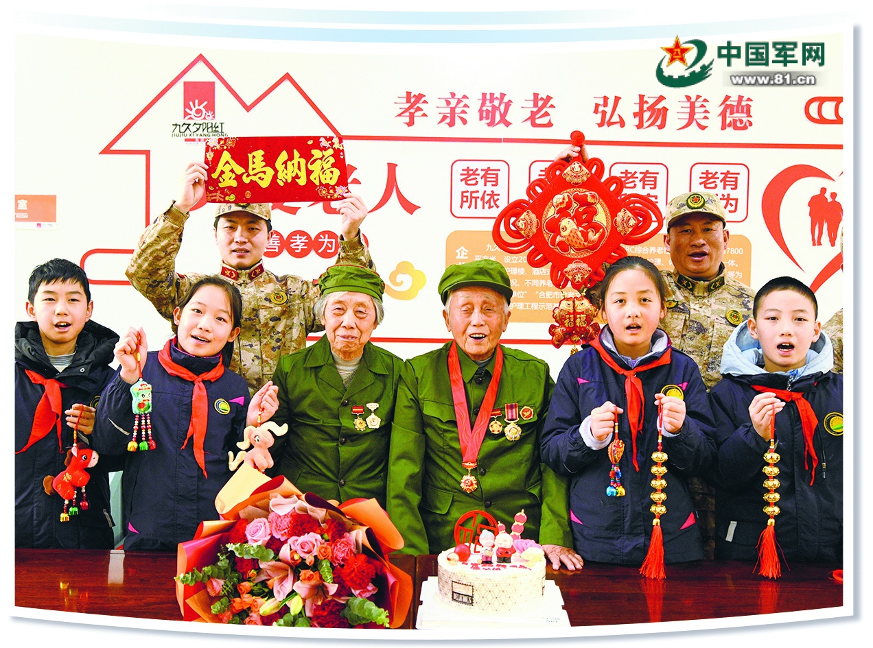 两位老兵饱含深情地讲,大家兴致勃勃地听,现场其乐融融。“曹爷爷、盛奶奶,我们会常来看你们”“祝二老新年快乐”……一片祝福声中,大家依依不舍向两位老兵告别。曹宝济和盛维林目送大家离开,久久地挥着手:“再次谢谢你们,这是最好的礼物!”