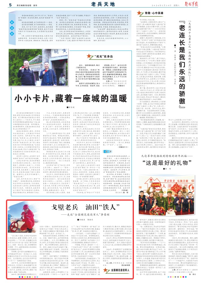 2024年,李荣辉获评“全国模范退役军人”。如今,李荣辉依然坚守在戈壁滩,和油井、风沙为伴。他说,尽管身上的军装换成了工装,他依然会像一名战士那样,在能源高质量发展的路上继续奋斗。
