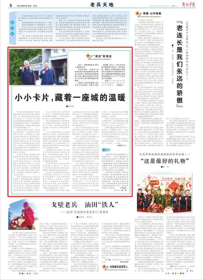 退役军人优待证制发已有4年多,它不仅仅是一张证件,更是一把钥匙,开启了一扇全社会尊重关爱退役军人的门。新年度的第一期版面,让我们将镜头对准这位手持退役军人优待证的平凡老兵,愿他所感受到的暖意,能流向更远的地方,汇入千千万万老兵心头的暖流。
