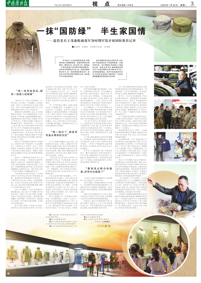 展览的影响力远不止于展厅。王茂森积极延伸教育触角,带着精心挑选的军装实物,深入校园、军营、社区,开设“移动的国防教育课堂”。