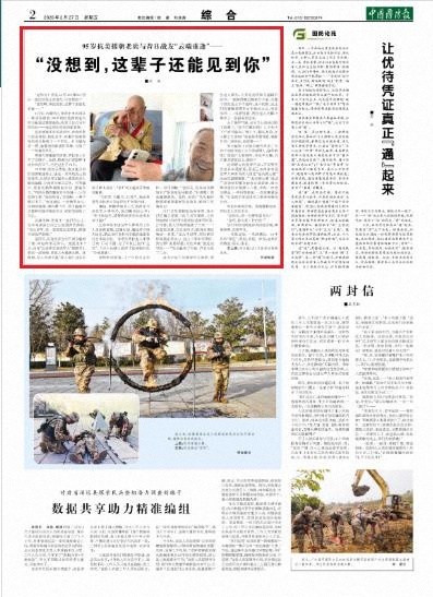 战火中结下的情谊历久弥新,两位老人聊的,大多是些琐碎又温暖的细节:一副磨得露出棉絮的手套,在整个排的战士手中流转;战斗间隙,战士们吃着煨烤得半生不熟的土豆,笑容灿烂……说着说着,两位老人的眼中都多了一层晶莹的泪光。