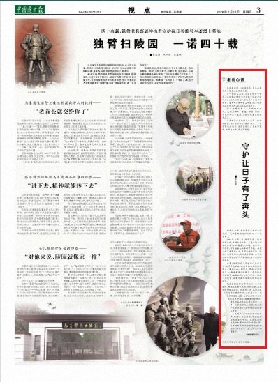 后来,前来祭奠马司令的人逐渐多了,其中有他的后人,也有他原部队的老战士。那些老战士的举止、神态、讲话的语气,一看就有军人的样子。在和他们的接触中,我意识到,自己守护的不仅是一座陵园,还有无数人对英烈的思念和敬意。