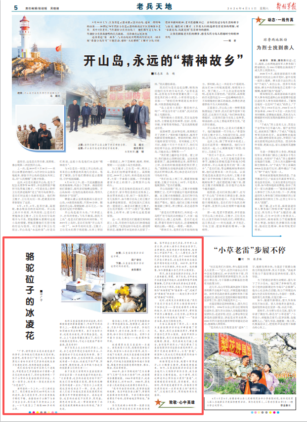 林海雪莲冰作胎,战霜斗雪顶凌开;小小鹅黄呈傲骨,英雄花使报春来。如今,玉皇庙抗联活动旧址已被当地列入文物保护单位名录,成为县爱国主义教育基地。这个清明,我们这群老兵让两位抗日英烈“重逢”,大家都感觉很有收获,很受教育。我们相约,明年就是建军百年,争取再为两位英烈组织一次更有意义的“清明之约”,以此铭记历史,更好地传承红色基因。