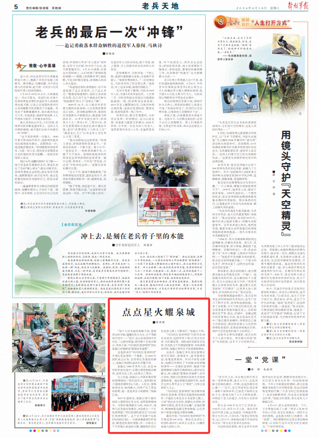 2017年退休后,张振江将大量时间投入到研究红色文化、宣传雷锋精神中。为更好地奉献光与热,2023年,他和几位老战友商量后,决定成立一个红色讲师团。“我们给团队取名为‘闪闪的红星讲师团’。这个名字来源于电影《闪闪的红星》,一方面承载着我们听党话、跟党走的质朴情感,另一方面这几个字有催人奋进的力量,激励我们在红色宣讲之路上不断前行。”张振江介绍。