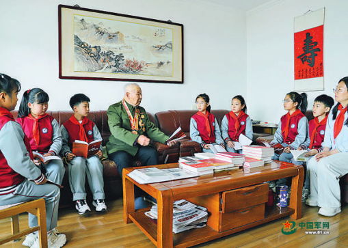 近日,山东省军区胶州离职干部休养所邀请学生来到抗战老兵鲁振武家中,聆听战斗故事。王军平摄