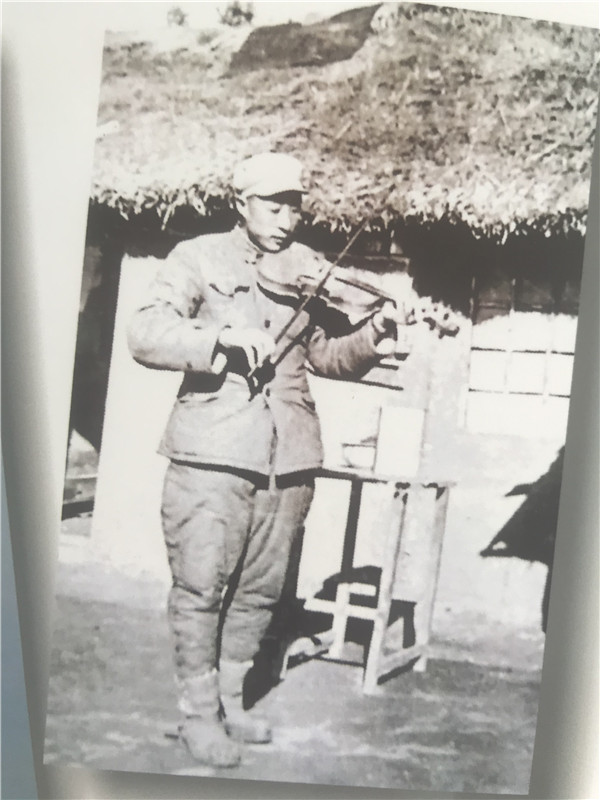 △战斗间隙,程茂友正在为官兵演奏小提琴。