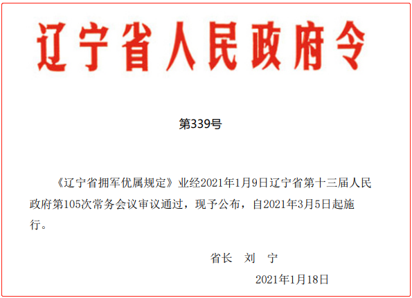 第二十五条 本规定自2021年3月5日起施行。1999年2月11日辽宁省人民政府令第101号发布的《辽宁省拥军优属规定》同时废止。