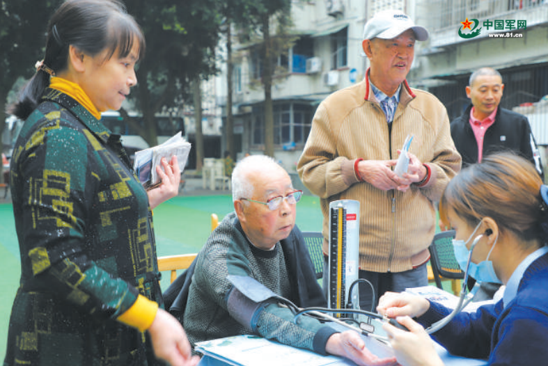 近日,武警四川总队医院组织医务人员来到乐山市军队离休退休干部休养所,为50余名离退休干部进行血压检测、血糖测量等身体检查,受到老干部的欢迎和好评。李华时摄