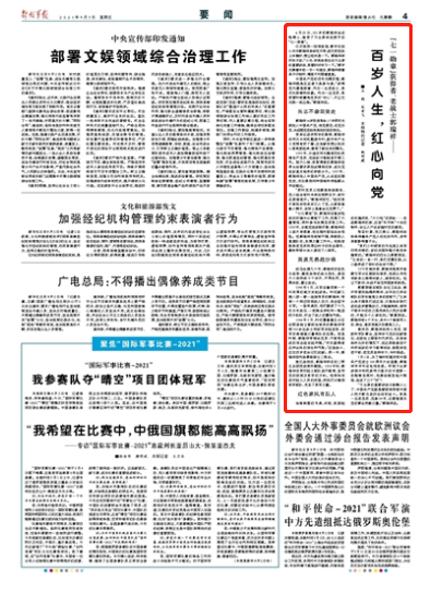 中国共产党的百年光辉历程,郭瑞祥既是见证者又是参与者。“获得党内最高荣誉,作为一名老战士,我无比骄傲和自豪。作为一名党员,我更要时刻擦亮党员的‘初心’,不让它沾染一丝尘埃。”郭瑞祥说。