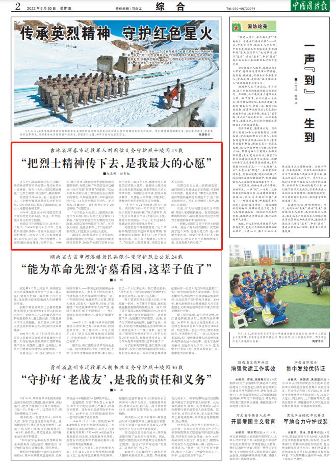 吉林省珲春市退役军人刘国信义务守护烈士陵园43载