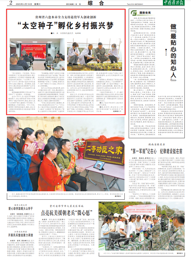 “向大家报告一个好消息,‘贵农5号刺梨种子’在实验室育芽成功,现已全部移种至‘太空育种’扩繁基地大棚,目前幼芽长势良好。”“太空种子,了不起!”4月5日,贵州省六盘水市举办退役军人创业主题沙龙。活动现场,由退役军人蔡志林创办的某刺梨产业开发有限公司喜报频传,让与会退役军人备受鼓舞。