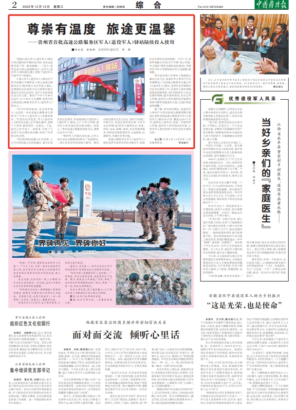 高速公路服务区军人(退役军人)驿站是贵州省深化军民共建水平,探索社会化拥军活动的缩影。今年7月,该省军地联合印发《关于开展“同心向强·共卫国防”拥军优属活动的通知》,多措并举为军人军属和退役军人送温暖、解难题。