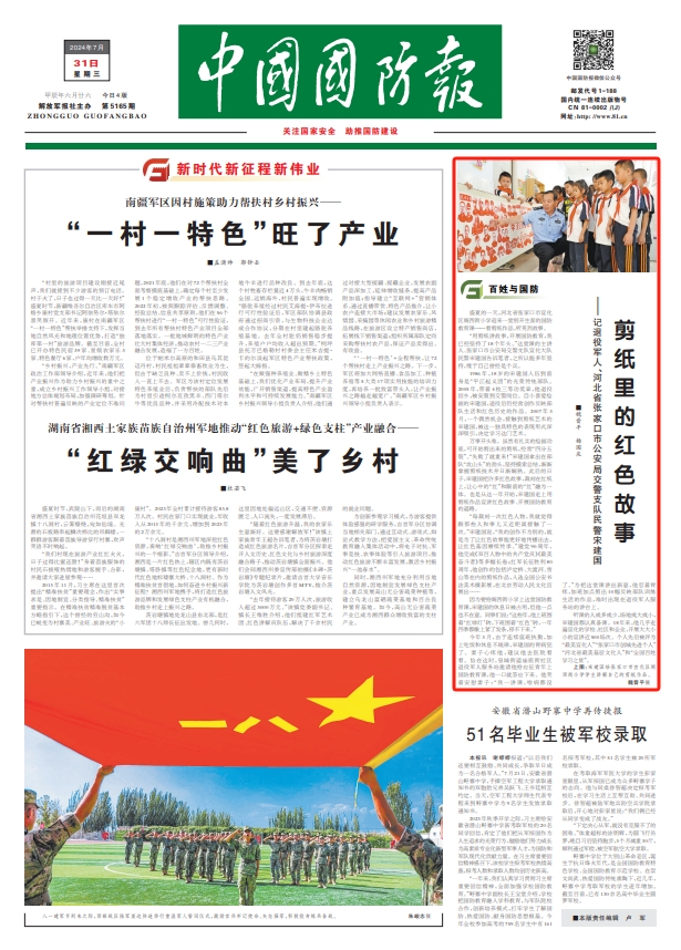 万事开头难。虽然有扎实的绘画功底,可开始剪出来的剪纸,经常“四分五裂”。“失败了就重来!”宋建国拿出在部队“攻山头”的劲头,坚持摸索总结,渐渐掌握剪纸技术并日渐娴熟。此后的日子,宋建国把许多红色故事,裁刻在红纸上,让心中的“红”和眼前的“红”融为一体。也是从这一年开始,宋建国走上用剪纸作品宣讲红色故事、开展国防教育的道路。