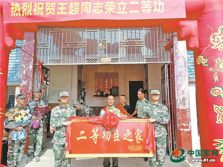 预定新兵为二等功臣王超送立功喜报。谭龙辉摄