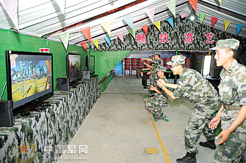 走进北京军区某装甲师驻训野营村,只见文化广场上激昂的电声乐队与劲爆的街舞组合演出赢得官兵阵阵喝彩;野战俱乐部里,电子游戏机带来的酷爽感觉使官兵训练疲劳一扫而光。该师今年驻训以来,积极为部队野战文化注入时尚元素,缓解了官兵身心压力,激发了训练热情。