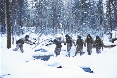 12月28日,吉林省军区边防某部官兵在边境线上踏雪巡逻。官兵们克服道路艰险等困难,坚持巡逻到点到位,确保边境安全稳定。 解放军报特约记者 阎江华摄