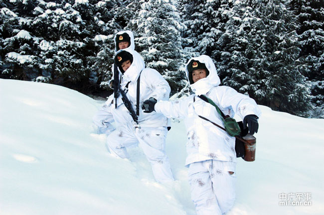 中国军网据央广网讯 元月7日,气温-28℃,新疆伊犁军分区红海沟边防连官兵踏着积雪,在蹲点干部、教导员张立强的带领下,沿着海拔3000余米的山脊线踏雪巡逻。连日来,新疆伊犁地区受到了连续的寒潮暴雪袭击,驻守在这里的伊犁军分区所属各边防连队克服困难,加大管边控边力度,确保边境安全。(朱德华摄影报道)