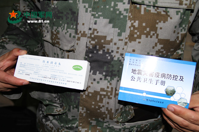 应急生产的饮水消毒丸和卫生防疫知识手册。高源摄