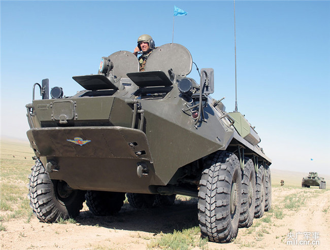 央广网朱日和8月28日消息(记者穆亮龙 谢露莹)上合组织“和平使命-2014”联合反恐军事演习即将于29日实施实兵演练。参演各方兵力正加紧训练,做最后的准备。训练期间,记者登上了哈萨克斯坦步兵战车,随车一起体验哈方步坦协同训练。