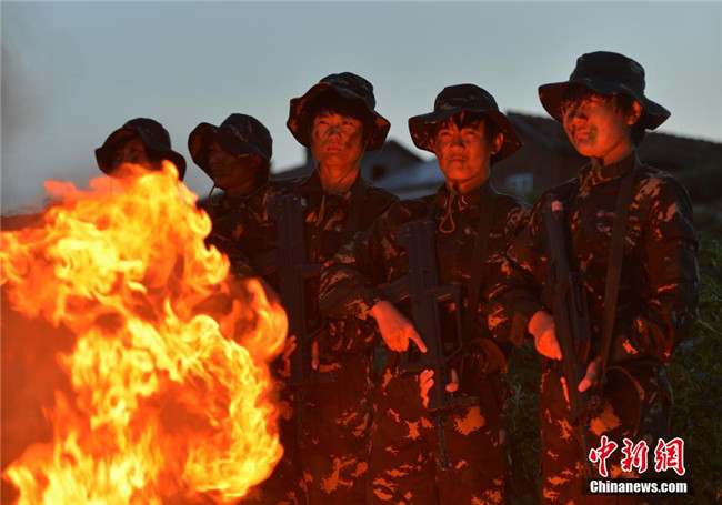 解放军某特战旅女子特战队员们在野外特训。杨再新