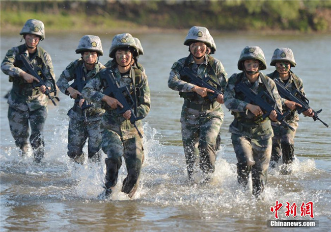 解放军某特战旅女子特战队员们在野外特训。杨再新
