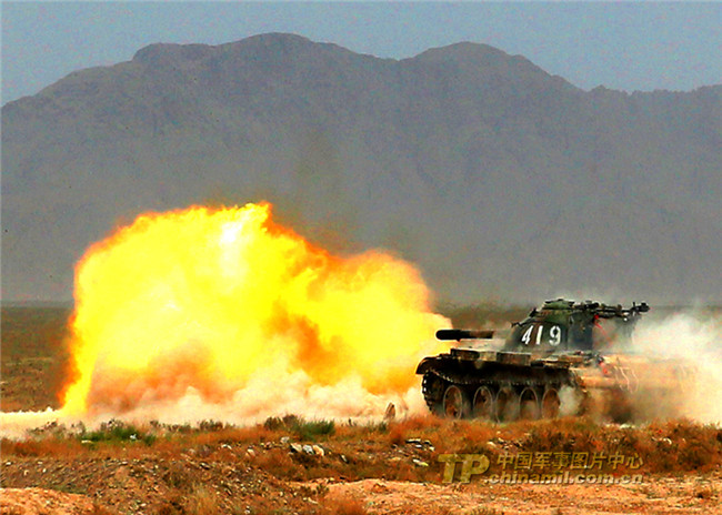 兰州军区某旅开展实兵对抗演练 坦克开火瞬间