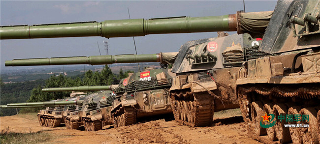 9月21日上午,济南军区某炮兵旅自行火炮营向发射地域开进,占领发射阵地后模拟集火射击,打击目标。 记者乔天富摄