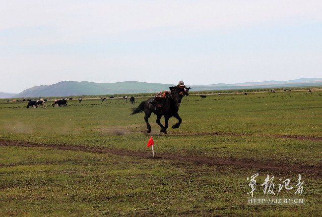 草原练兵:边防团骑兵持枪策马飞驰间射击(高清)