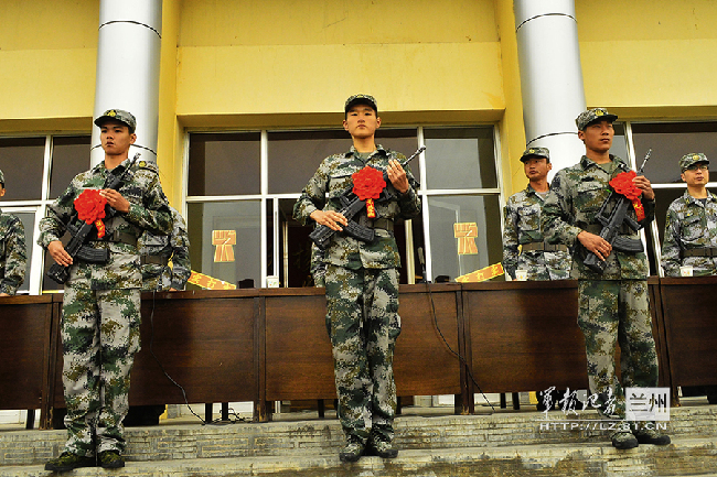 兰州军区某红军团新兵授枪仪式 钢枪锃亮