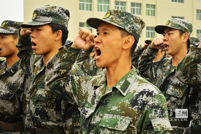 兰州军区某红军团新兵授枪仪式 钢枪锃亮