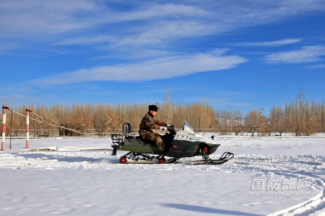 隆冬季节,北疆大地普降大雪,厚厚的大雪覆盖巡逻路。12月12日,新疆塔城军分区某边防团抓住有利时机组织官兵进行了摩托雪橇驾驶集训。使边防官兵们熟练掌握摩托雪橇操作技能,有效提高了边境处置突发事件能力。