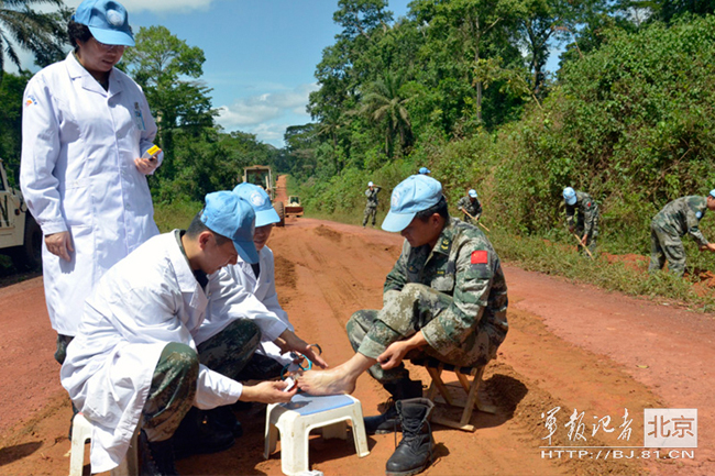 医疗分队到野外为兄弟部队的官兵提供医疗服务。