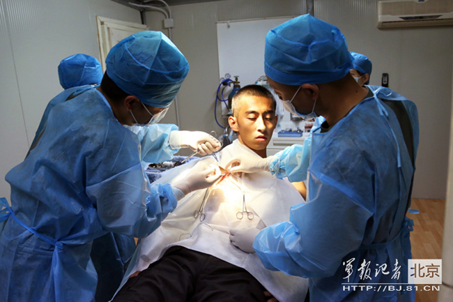 为兄弟部队的战士进行外科手术。