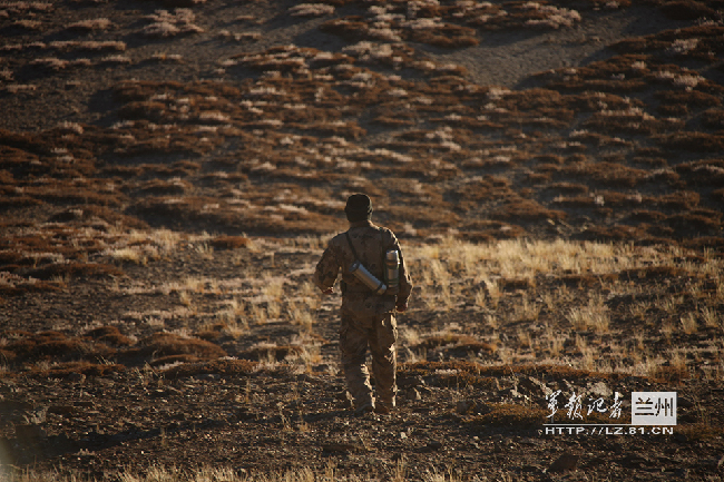太阳落山了,连长刘俊麟背着水壶给大家取水