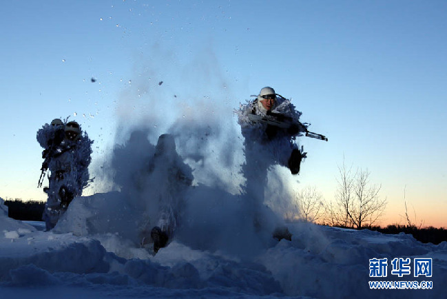 “目标在2号区域出现,A组沿4号路线于9时30分前到达距离3公里处的XXX高地,对其进行伏击!”电台中突然传来指令,只见上士王劲飞从雪地中跃起,背起背囊,抖落身上的积雪,抬腕看表:9时17分。几乎同时,不远处的雪地里刷地一下钻出5名同样身着雪地伪装服的特战队员。